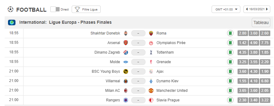 Grâce au bouton d'affichage des matchs en direct, connaitre en temps réel les résultats des matchs n'a jamais été aussi facile. Par ailleurs, un filtre intuitif est disponible et sert à affiner les recherches en décochant certaines compétitions pour n'afficher que les matchs des championnats, des tournois, des ligues et des coupes qui vous intéressent. Une autre fonction très pratique proposée pour notre tableau d'évènements sportifs live est le changement de fuseaux horaires. Avec cette option, les horaires des matchs de notre tableau peuvent être synchronisés avec les heures de tous les pays.